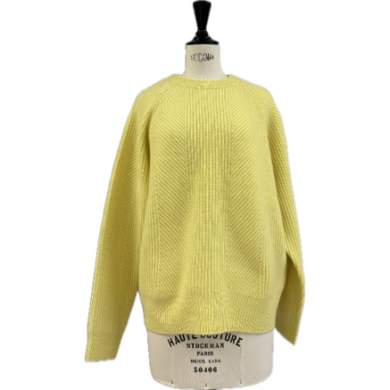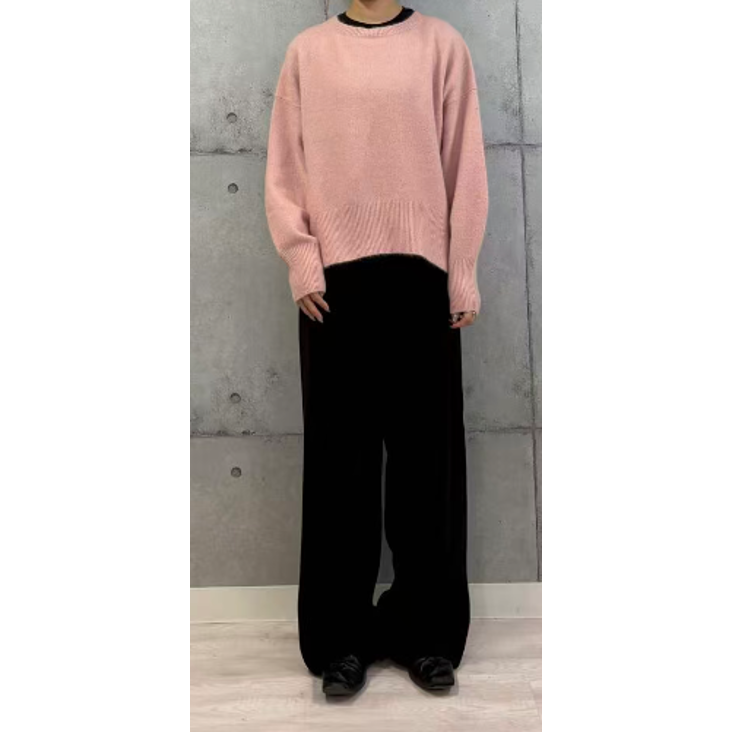 リリーリンが得意とするリラックススタイル。FOX,WOOL,NYLONのオリジナル混紡糸。 片畦編み仕様で袖はパフっとしたリリーリン得意のフェミニンリラックストップスです。優しい風合いと温かさを兼ねており、ラクーンほどでは無いですが、毛羽がある素材感です。